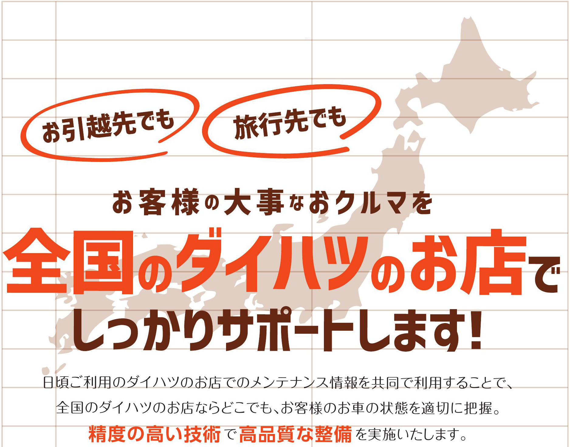 お客様の大事なおクルマを全国のダイハツのお店でしっかりサポートいたします!
