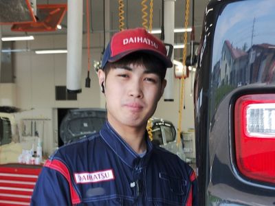 入社を決めた理由は、「一番身近な存在だったから」です。母や祖父母がダイハツ車に乗っており、点検にも一緒に行くなど、幼い頃から馴染みがありました。専門学校時代に複数の会社を見学しましたが、鳥取ダイハツは上司と部下の距離が近く、お昼をご一緒した際に感じた風通しの良さが印象的でした。加えて、給与と休日のバランスが最も良いと感じたことも、入社の大きな決め手になりました。 |