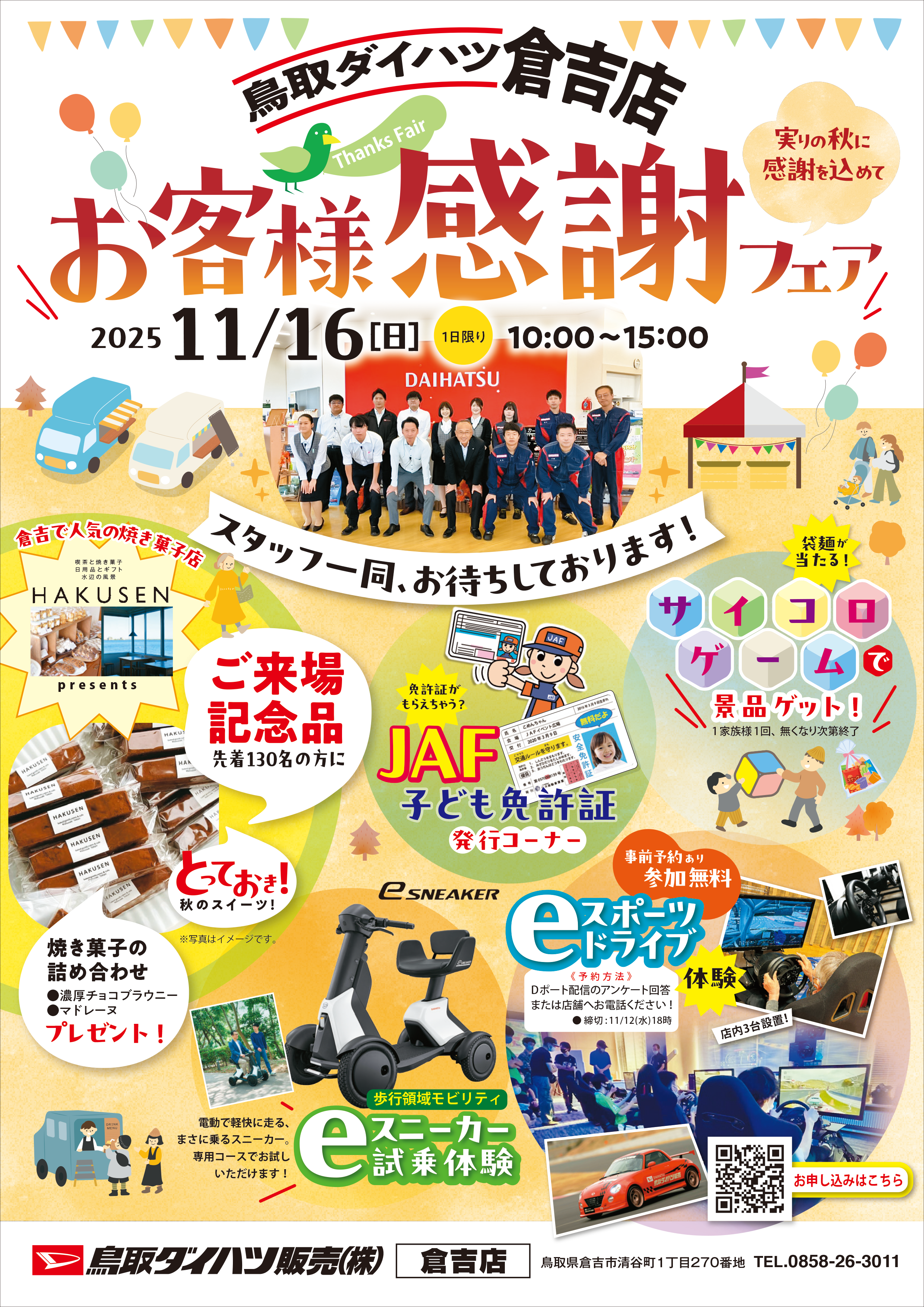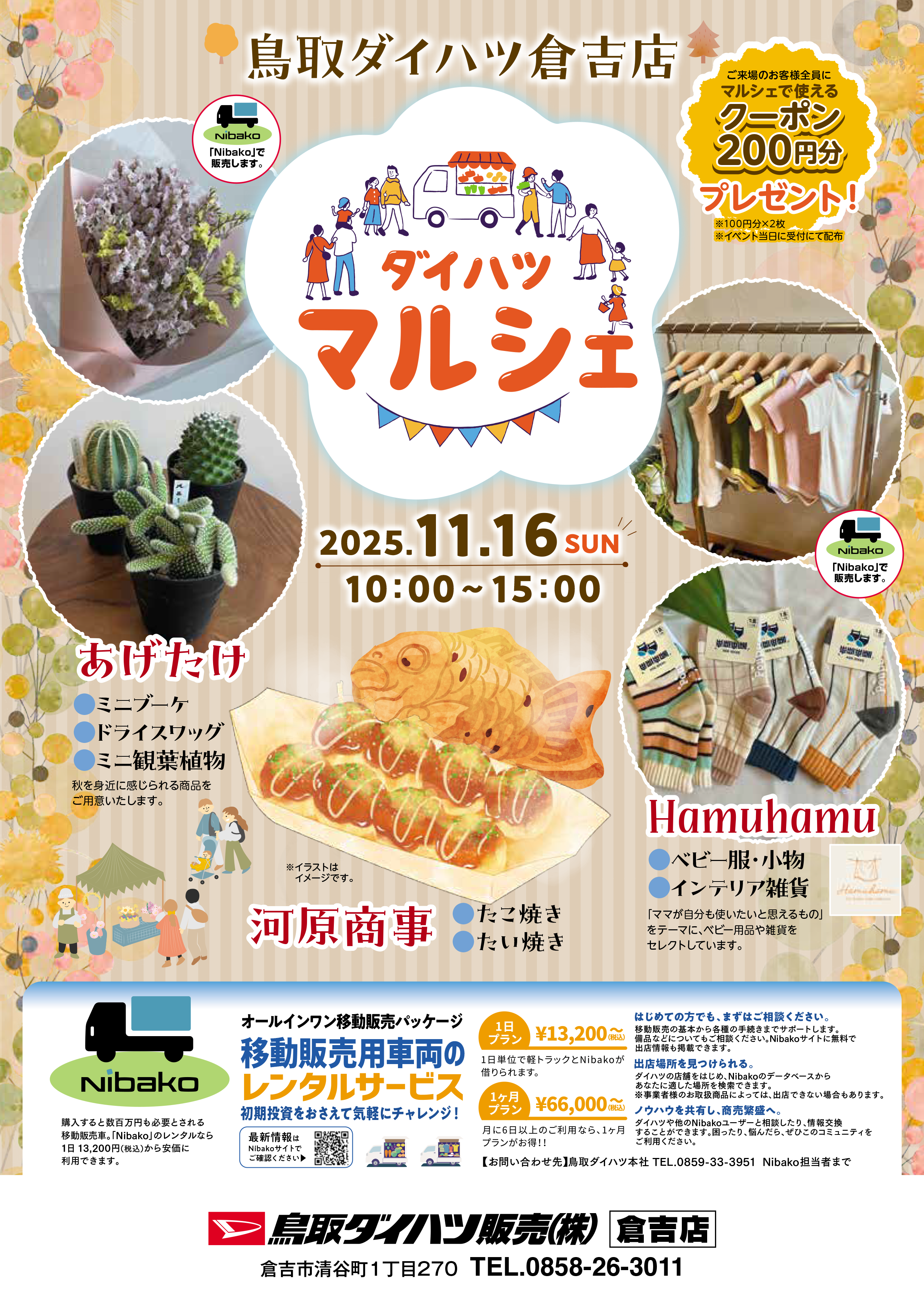 📅 11月16日(日)10:00~15:00 | 📍 鳥取ダイハツ 倉吉店
