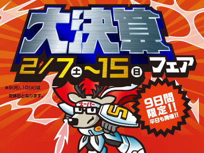 2月7日(土)から2月15日(日)まで「大決算フェア」を全国のお店で実施中。ご来店でもれなく素敵なプレゼント!