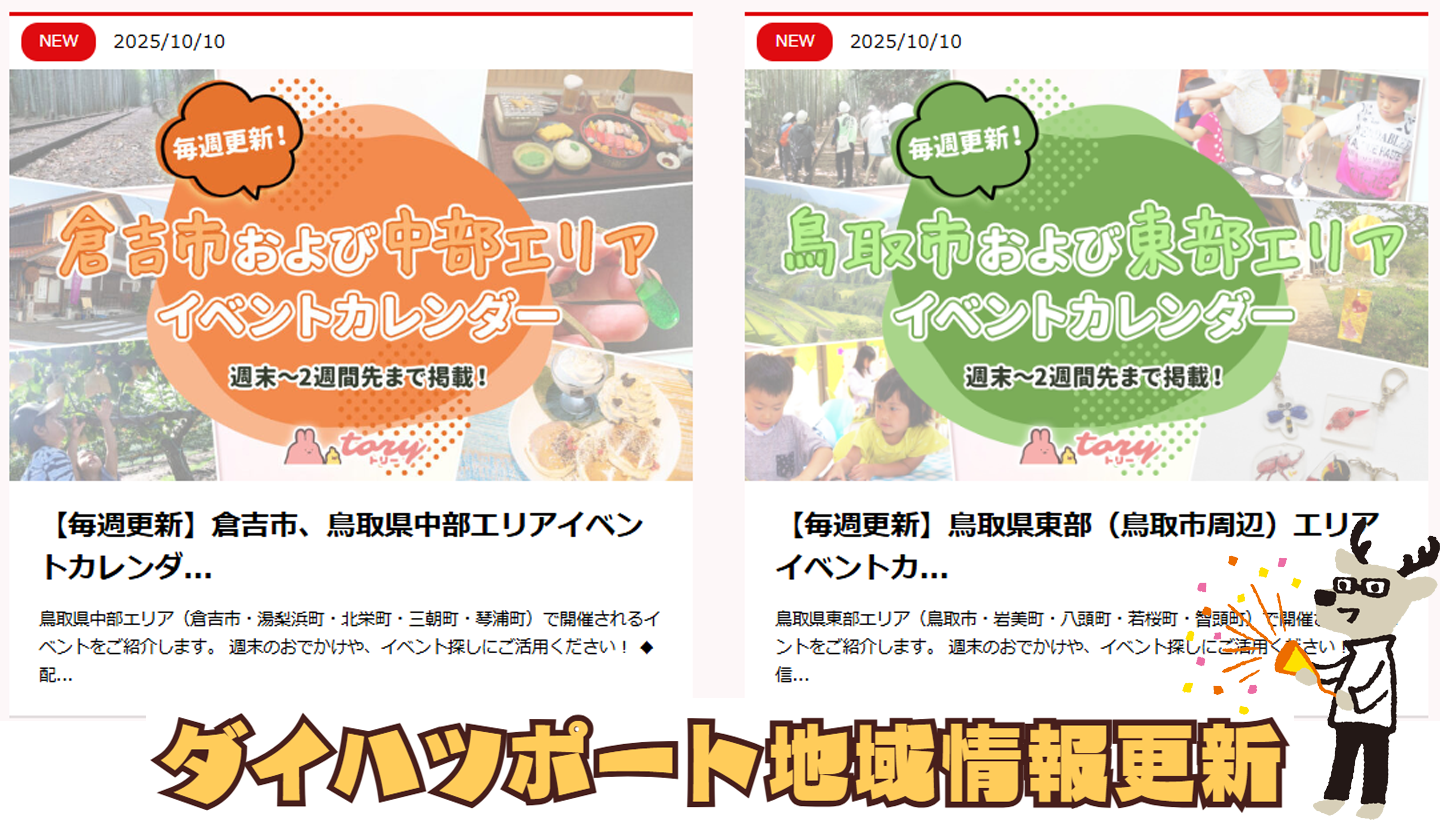 会員様限定の特典として、鳥取県・島根県の地域情報をはじめ、グルメ・観光・イベントなど、さまざまな情報を掲載しています。