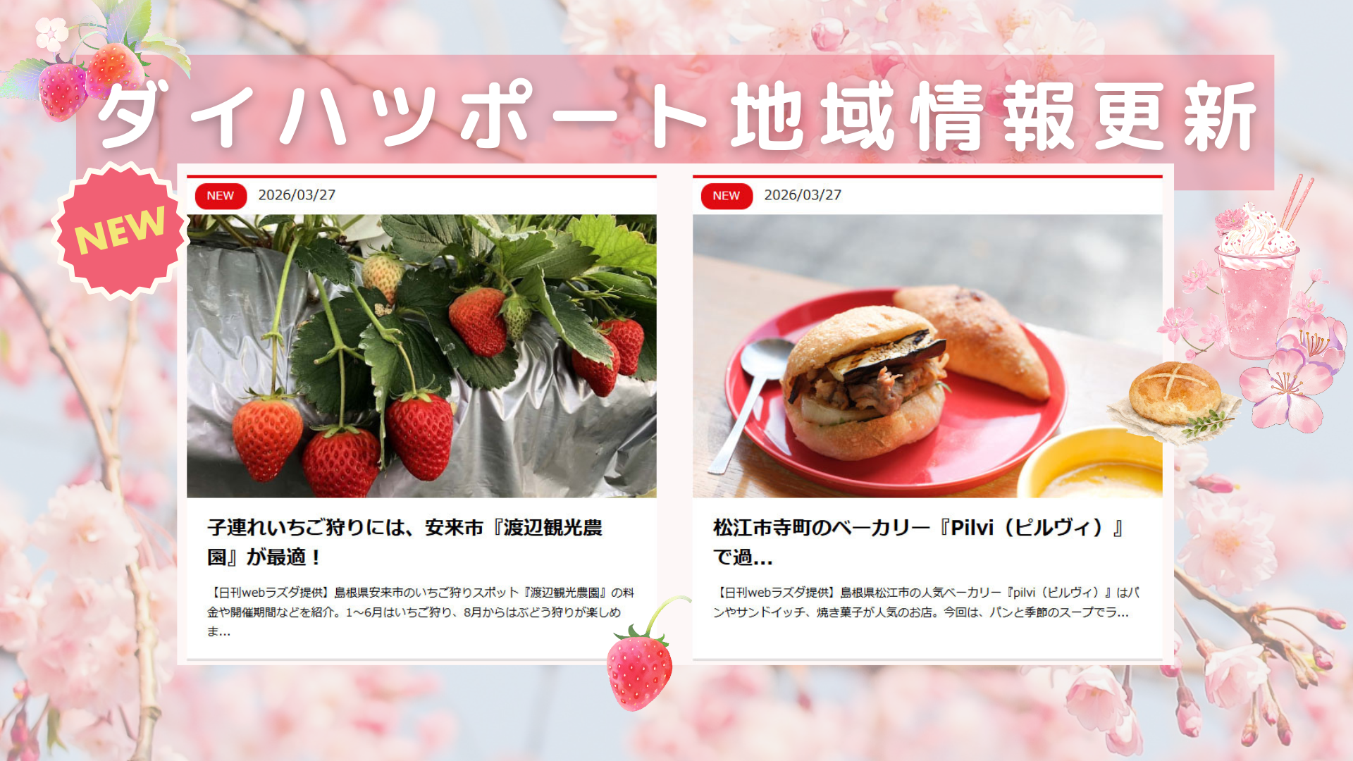 会員様限定の特典として、鳥取県・島根県の地域情報をはじめ、グルメ・観光・イベントなど、さまざまな情報を掲載しています。