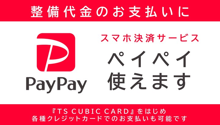 2021/01/10PayPay使えます!整備代金のお支払いに、各種クレジットカードでのお支払いも可能です。