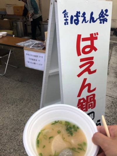 お待ちかねの『ばえん鍋』を頂くべく、すぐに行列に並びましたっ!笑