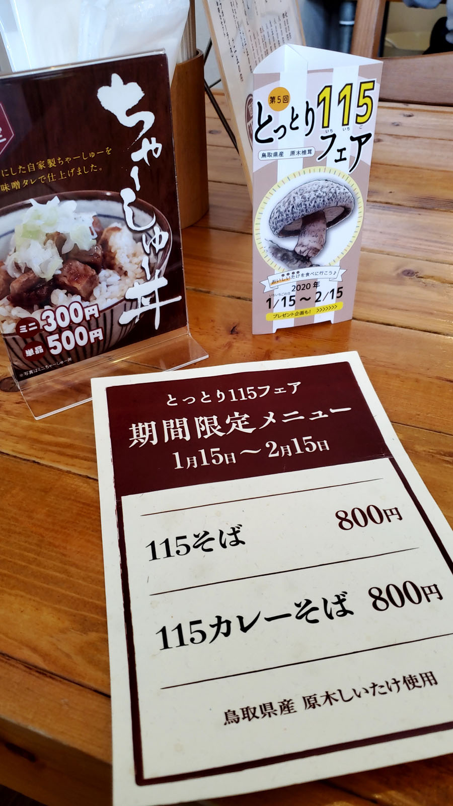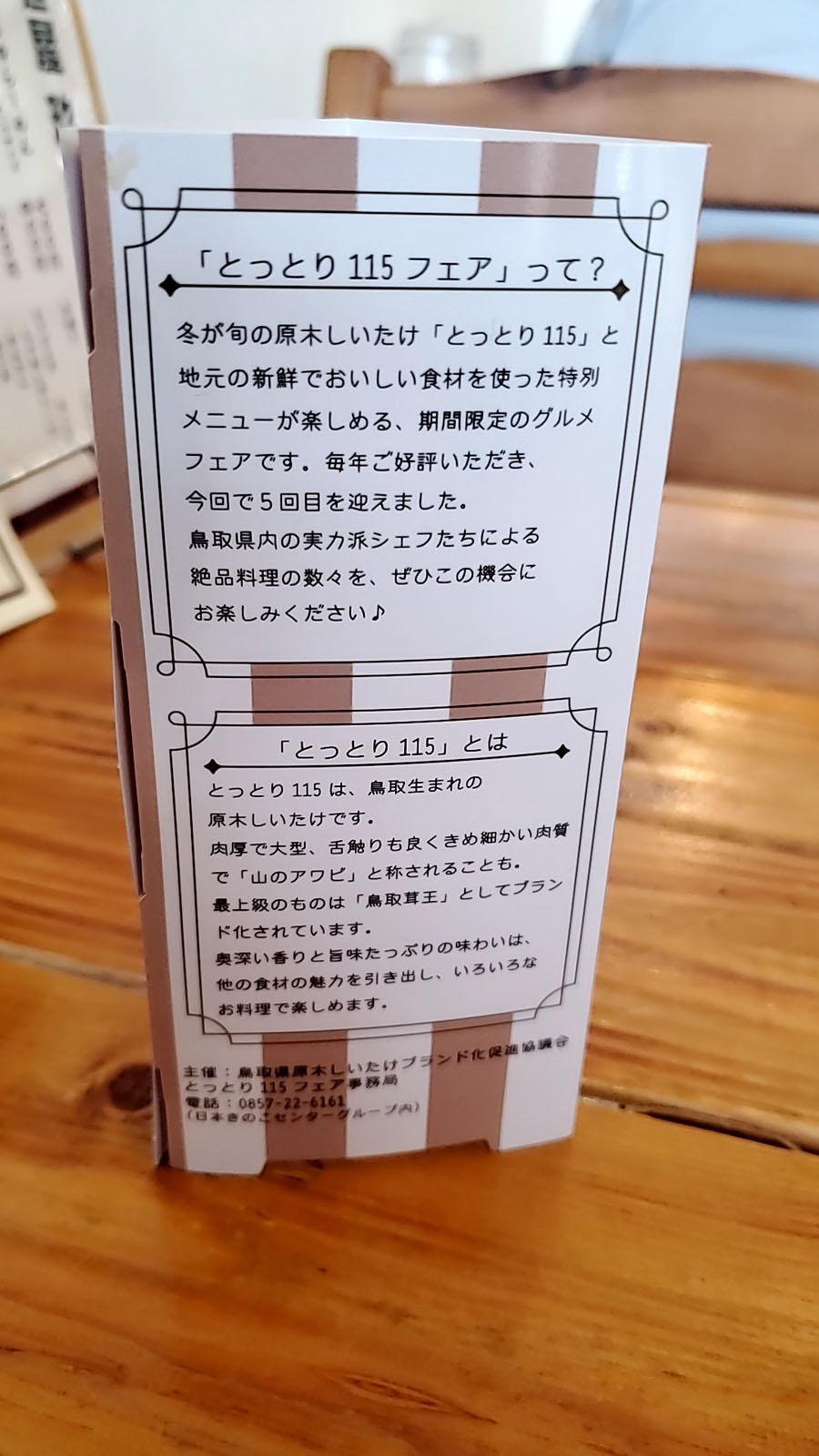 この原木シイタケを普及させる為、『鳥取115フェア』と称して様々な飲食店が115を使用した限定メニューを販売しているとの事です。詳しい情報は『こちら』。