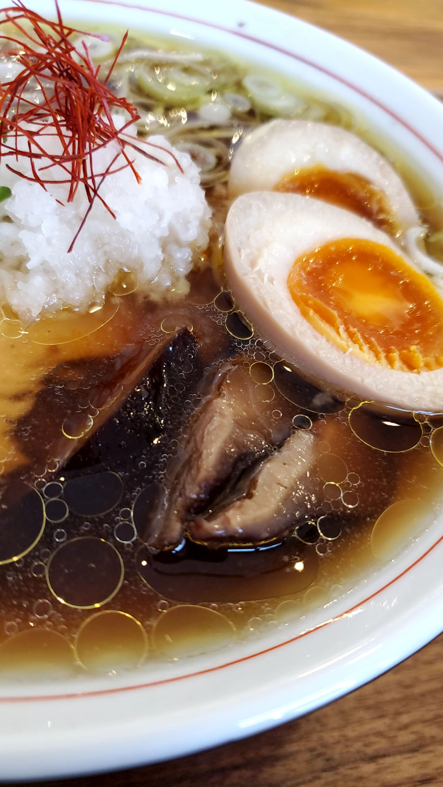 限定と聞いて早速食いついたブログスタッフ。早々に『115そば』をオーダーさせて頂きました。欲張って『味玉』トッピング。