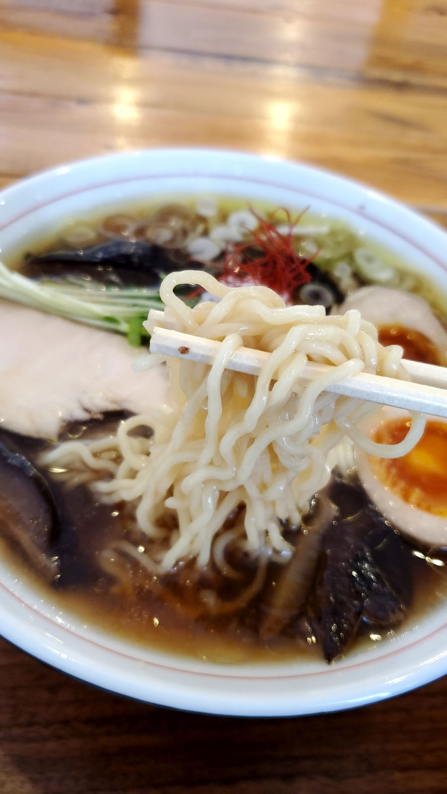 スープは見た目も澄んだ、あっさりとした醤油味。チャーシューが鶏チャーシューで胸肉を使用されていました。これがしっとりと柔らかくてまた美味しいんですよ。