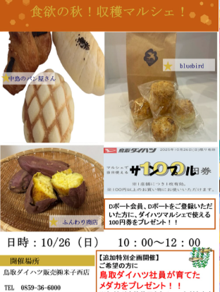 - 【いよいよ今週末!鳥取ダイハツ米子西店「食欲の秋!収穫マルシェ!」開催! -