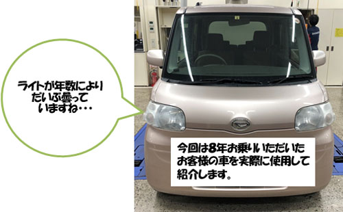 - 1) まず、黄ばみが重度なのか軽微なのかプロの整備士の目でチェック!