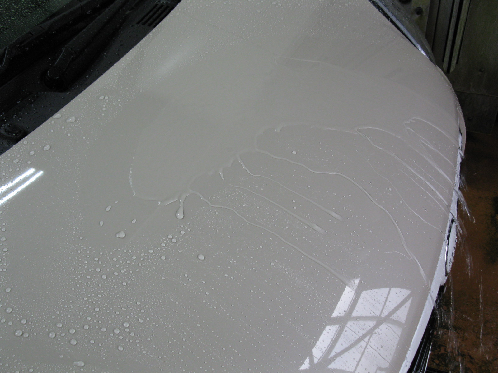下の写真のように水がつるりと流れ落ちる仕上がりになります。